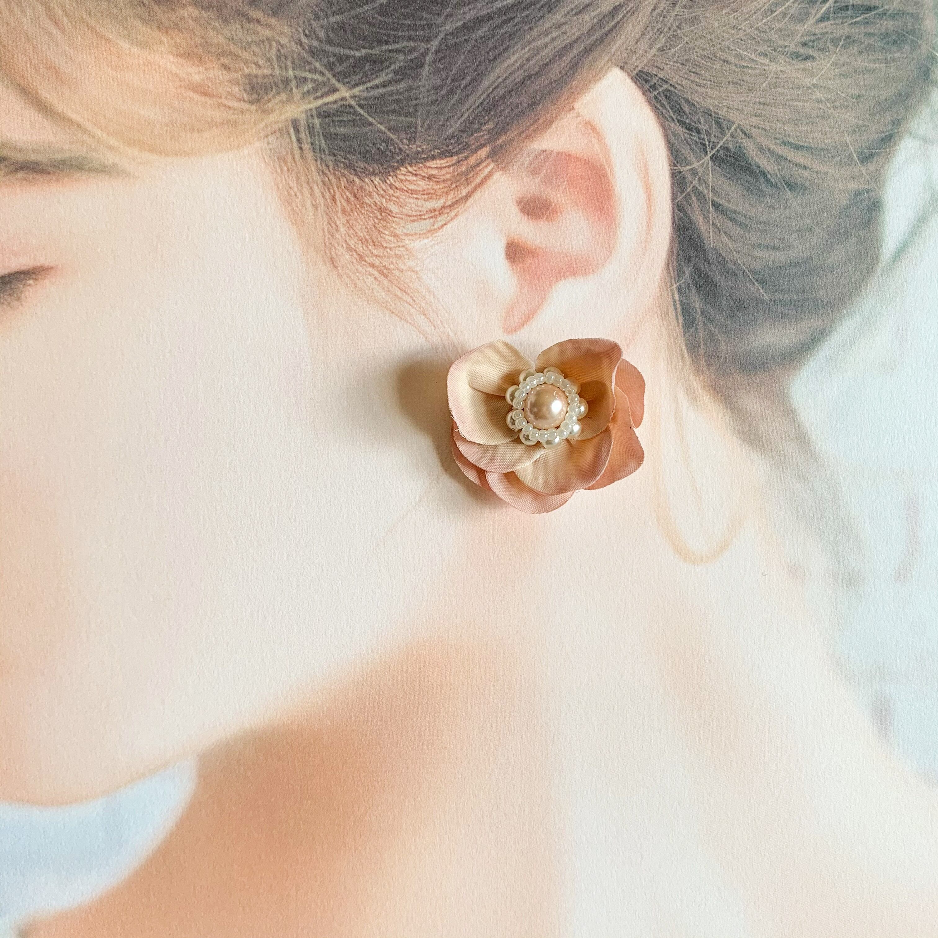 フロリアン ピンク お花ピアス(イヤリング)フラワー アレルギー対応 フォーマル ピアスみたいなイヤリング