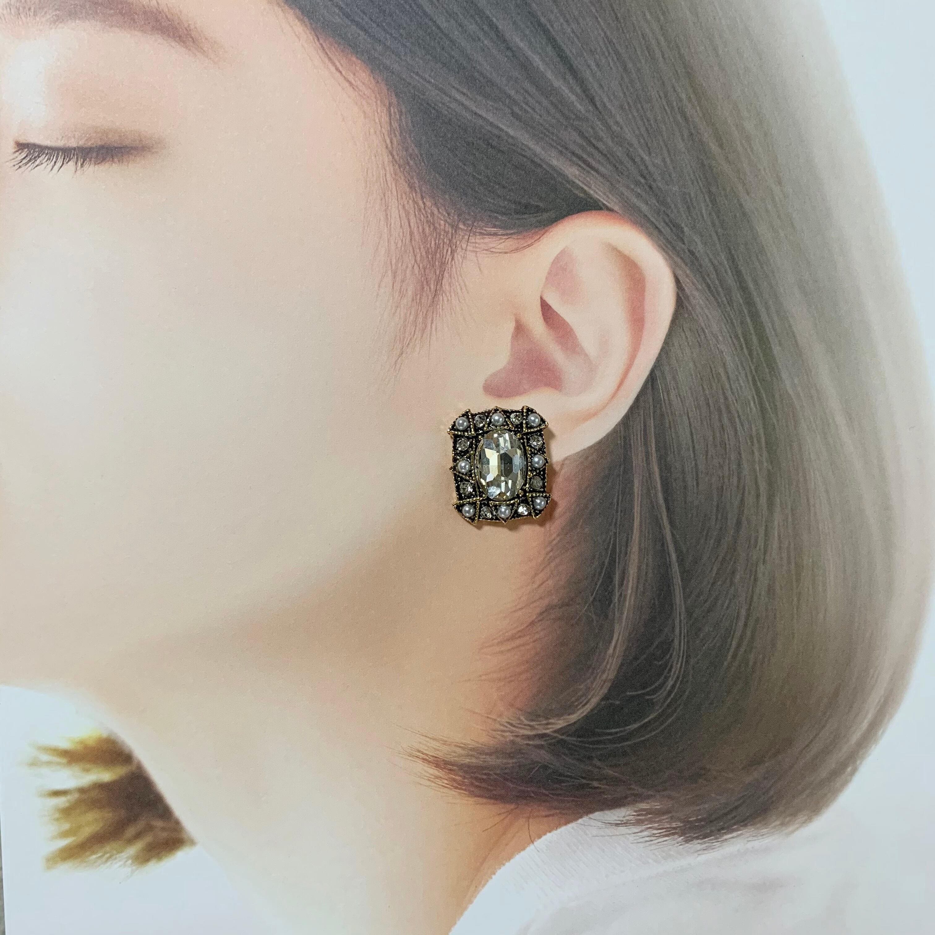 ジュエルやパール、ラインストーンを詰め込んだカボションに、取り外し可能なフリルがセットになった2wayピアス。その日の気分に合わせて楽しんで下さい。