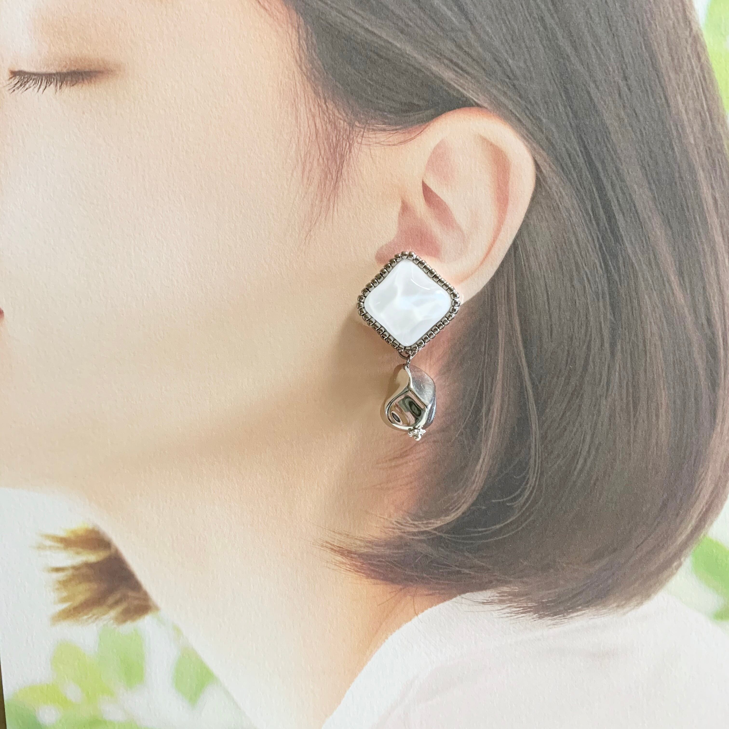 ピアス、イヤリング共に金具のお色は【シルバー】になります。
