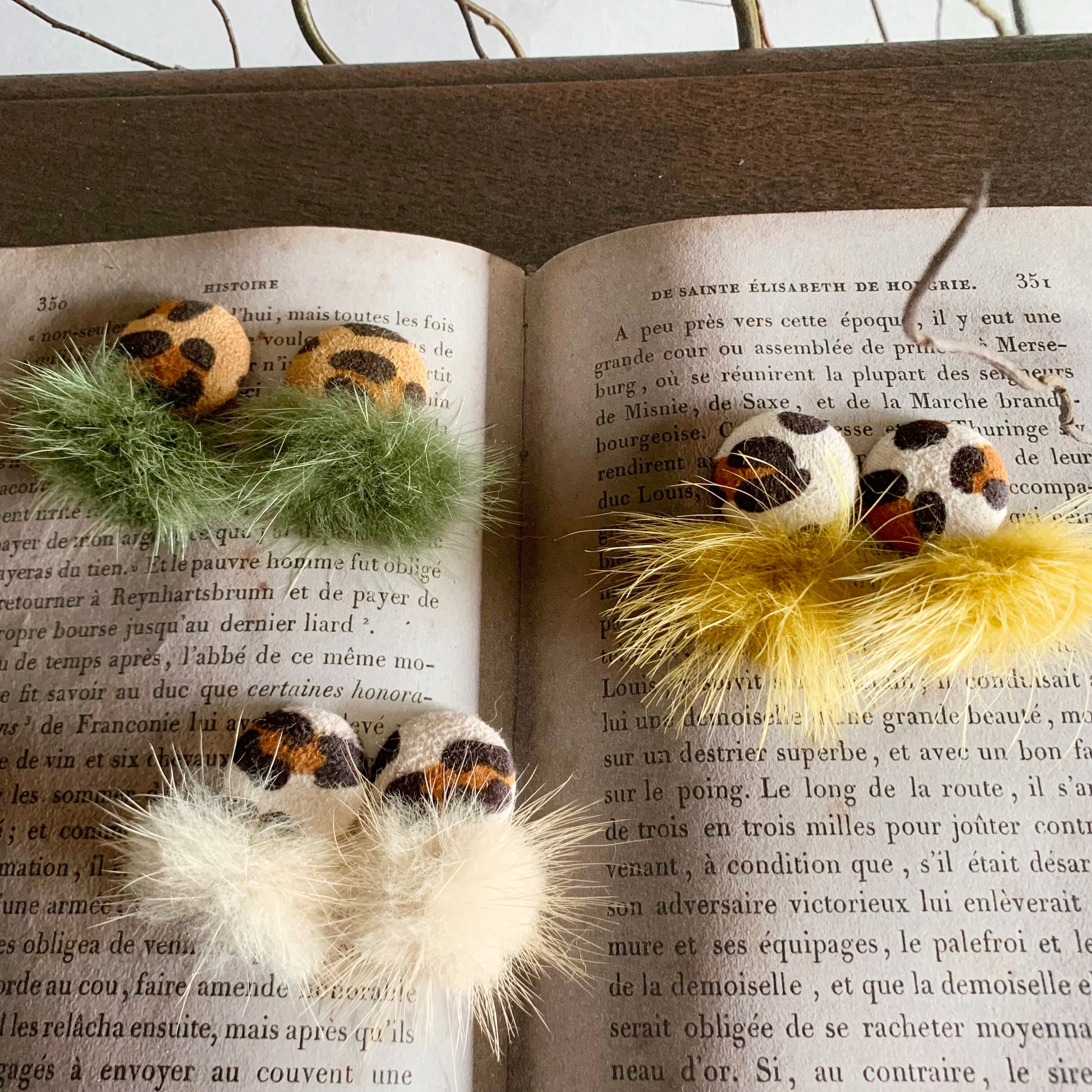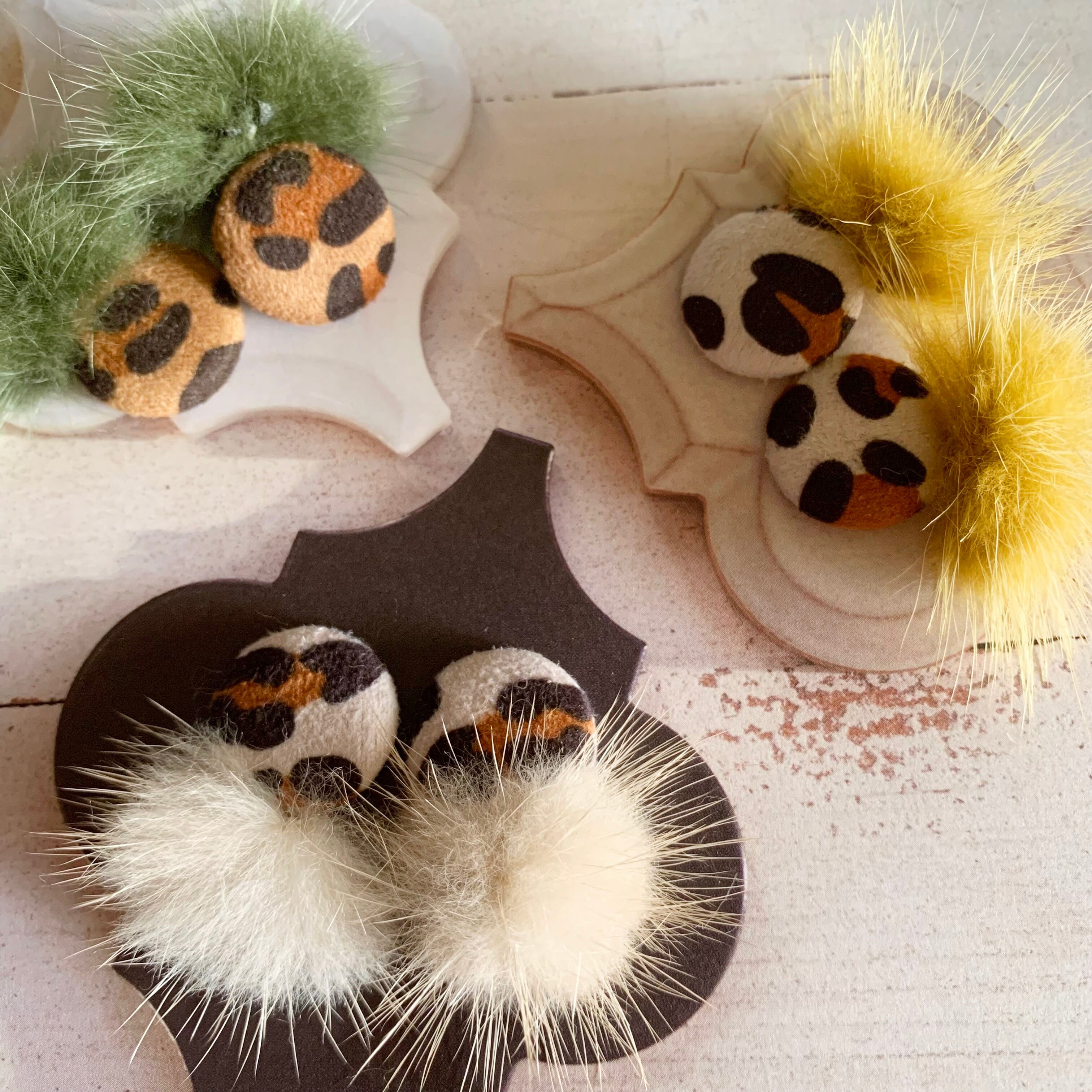 まぁるいスエード素材のレオパードカボションにミンクファーを合わせた大人かわいいデザインです。
